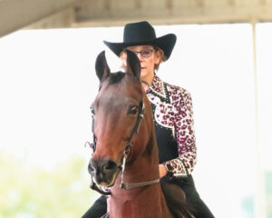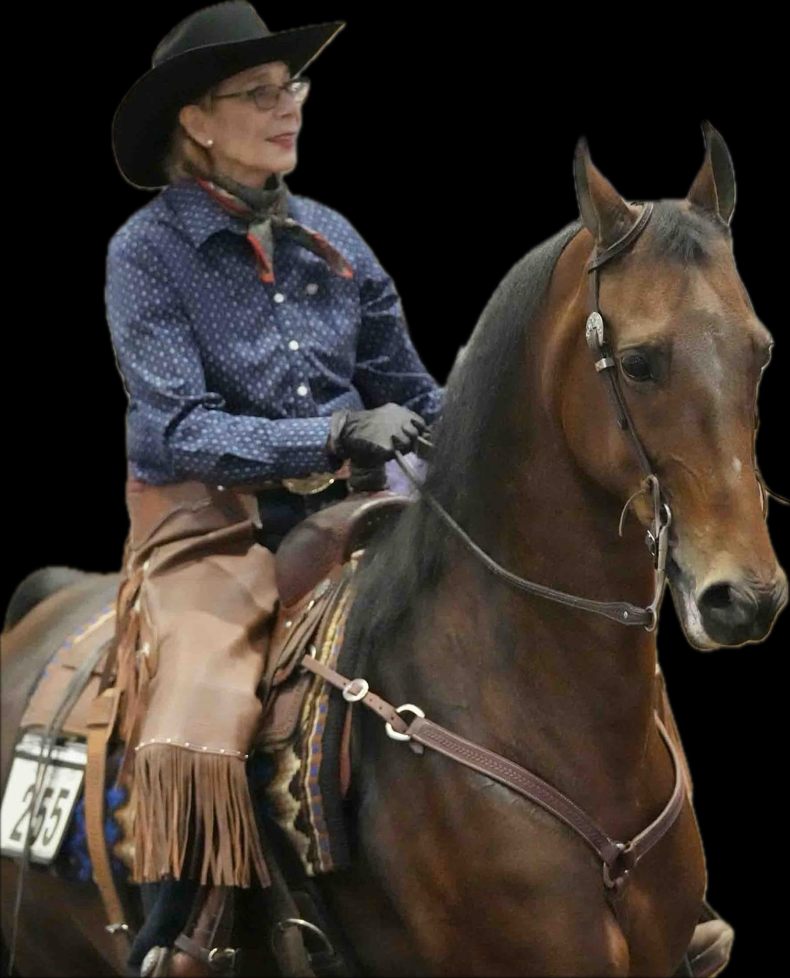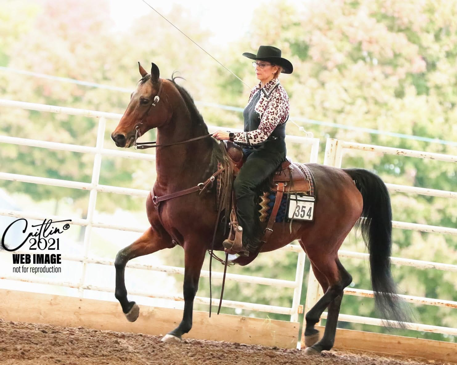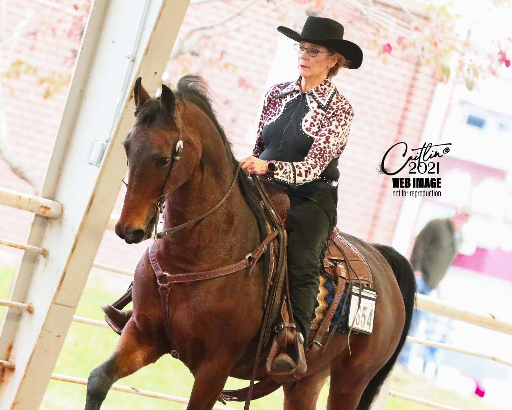 Harriet “Hattie” Francis (1955-2022) was a life-long fan of the American Saddlebred, attending every show, for many years with Mary Hubbell Avery, and helping shows and horse-related events to become successful by volunteering for all jobs, big and small, clean and dirty!  She was an advocate for the Saddlebred in all disciplines and therefore, when the opportunity to serve VERSA as its Treasurer, she willingly accepted that role as well.  She finally achieved her goal of owning and showing her own Saddlebred, purchasing I Mac (aka “Sister”), a bay western pleasure mare who had been trained by Carol Jones, in 2016. Sister had been shown very successfully in western pleasure and trail before Hattie purchased her, but when the Ranch division became more widely featured in shows in the Midwest, Hattie, Sister, and Sister’s then-trainer, Brenda Benner focused their attention on this division, for which Sister was uniquely qualified.  Even as Hattie courageously battled with her cancer diagnosis, she showed Sister in Ranch classes, her smile radiating from across the arena.